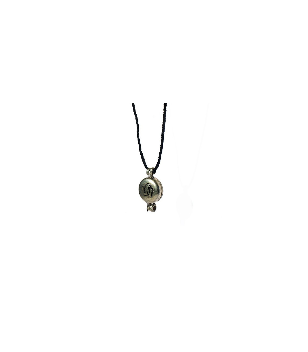 Amuleto caja de rezo tibetano hecho a mano con símbolo budista tibetano OM tallado.
