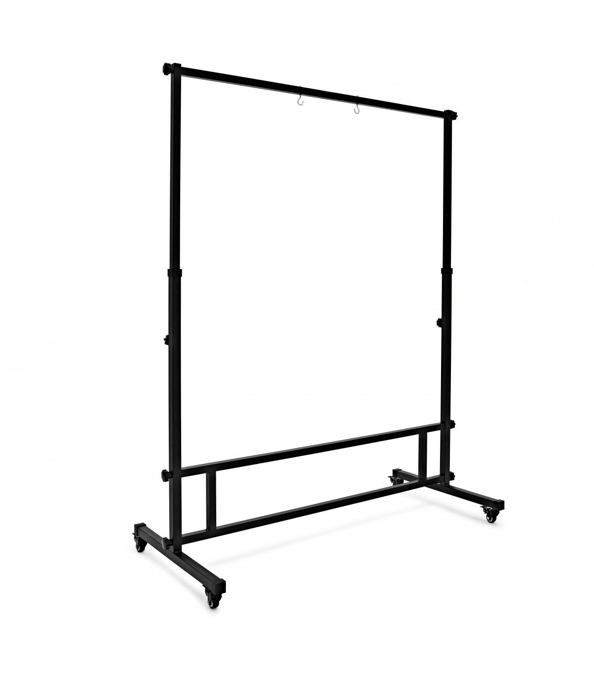 Soporte de acero ajustable para gongs de hasta 70 cm de diámetro. El soporte es muy resistente, fácil de mover, ajustar y desmontar, marco ligero y tuercas de mariposa. Viene con ruedas.