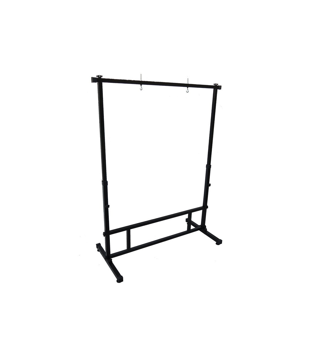 Soporte de acero ajustable para gongs de hasta 60 cm de diámetro. El soporte es muy resistente, fácil de mover, ajustar y desmontar, marco ligero y tuercas de mariposa.