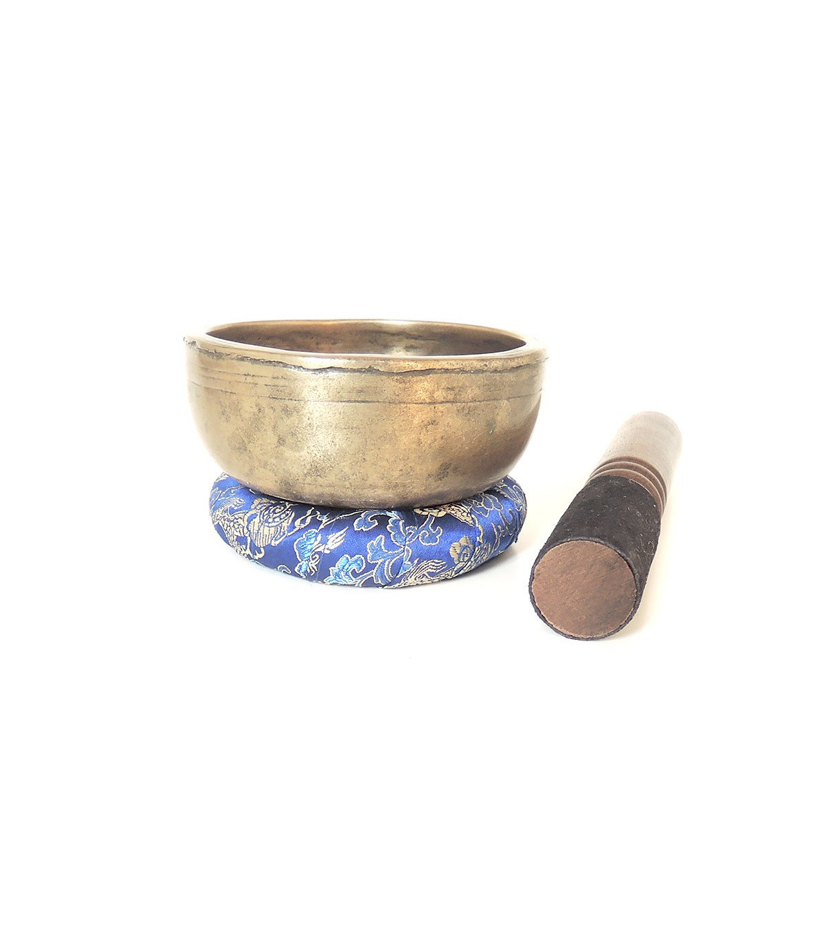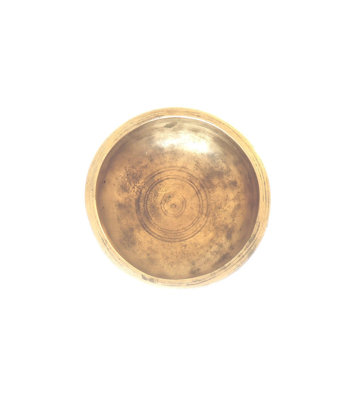 Este cuenco proviene de la región oriental de India, Nepal y Tibet. Su aleación es de siete metales y la forma es de taza o cazo (base plana y paredes rectas).