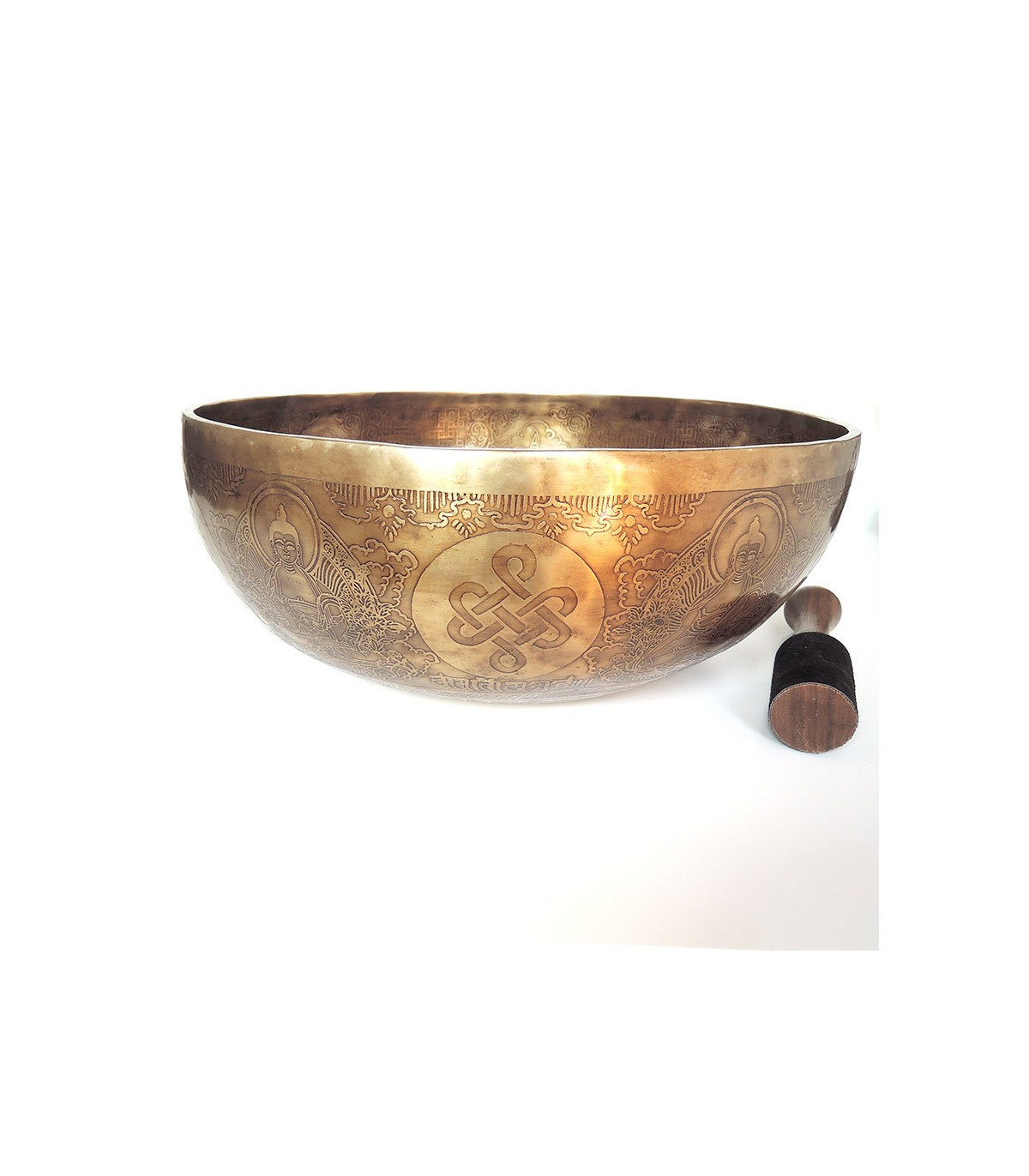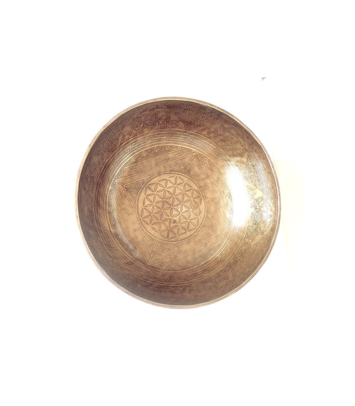 Cuenco cantor grabado realizado artesanalmente en la región de los Himalayas con aleación de 7 metales que le confieren una bella combinación de armónicos.