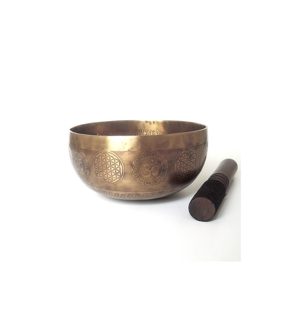 Cuenco cantor grabado realizado artesanalmente en la región de los Himalayas con aleación de 7 metales que le confieren una bella combinación de armónicos.