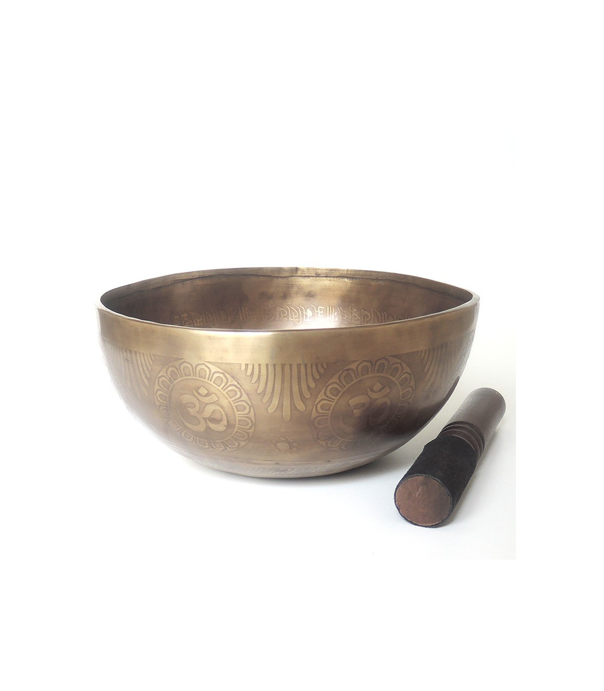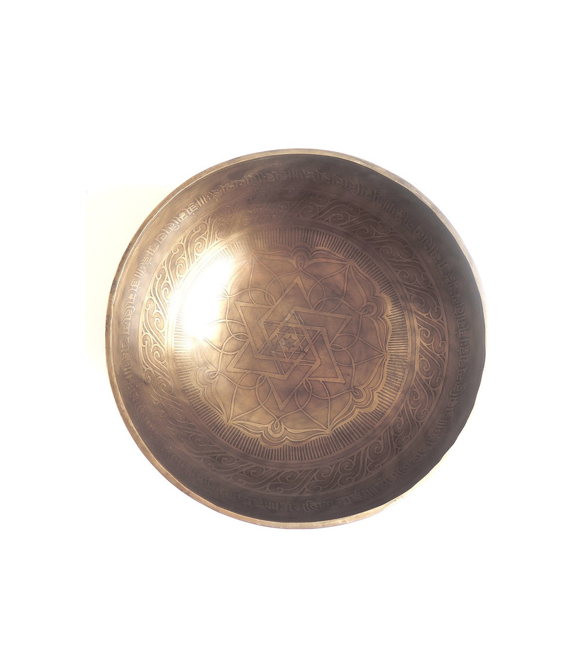 Cuenco cantor grabado realizado artesanalmente en la región de los Himalayas con aleación de 7 metales que le confieren una bella combinación de armónicos.