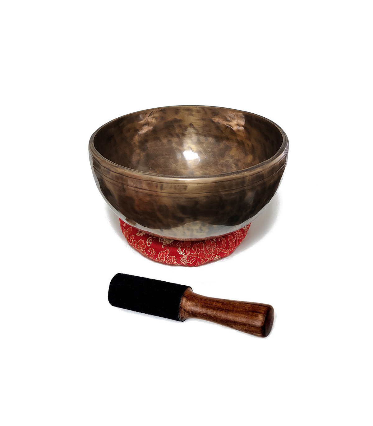 Cuenco cantor realizado artesanalmente en la región de los Himalayas con aleación de 7 metales que le confieren una bella combinación de armónicos.