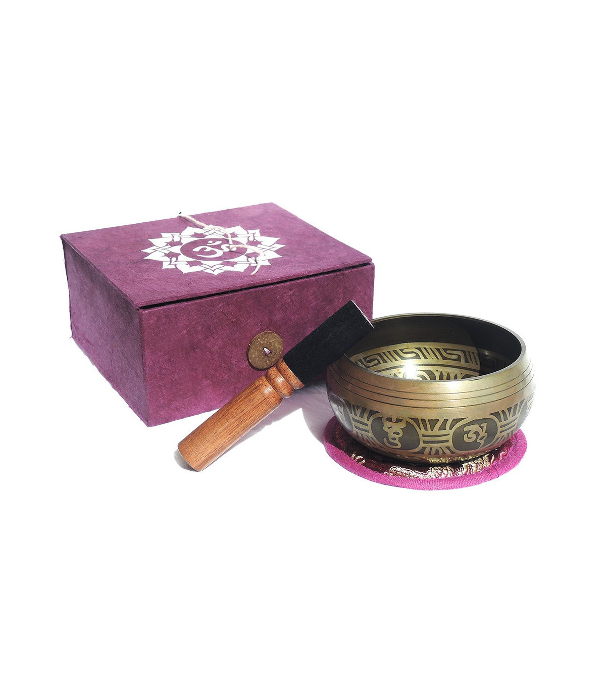 El pack incluye un Cuenco Tibetano de 10 cm fabricado en Nepal, una baqueta forrada con cuero, un cojín y una caja de regalo con el símbolo Om. Todos los cuencos han sido fabricados y seleccionados uno a uno por su calidad y consistencia sonora. Al percutirlo se genera un bello sonido para calmar, tranquilizar y relajar el cuerpo. El cuenco viene con todos los accesorios necesarios para tocarlo y guardarlo. Ideal para regalar a un amigo o ser querido. Al friccionar el borde genera un sonido limpio, sin estridencias. Perfecto para meditar y serenar la mente.